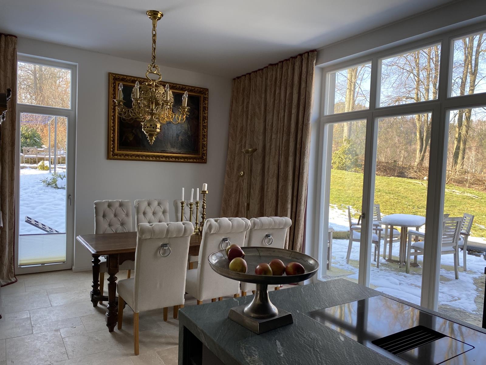 Auf der Terrasse finden Sie Entspannung udn Erholung. Genießen Sie den Blick in den Garten und auf die Kirche, lauschen Sie dem Zwitschern der Vögel.